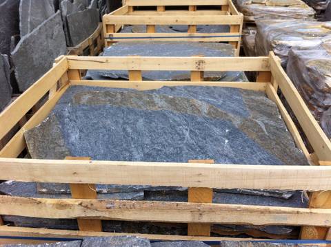 Lagervorrätig: Terrassenplatten als Polygonalplatten (Bruchplatten in unregelmäßiger Form).