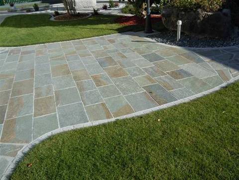 Eignung: Formplatten - Grün Braun - Karistou Quarzit sind für den Innen und Außenbereich geeignet, z.B. als Bodenbelag, Terrassenbelag für die Zuwegung.